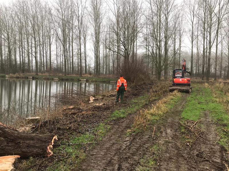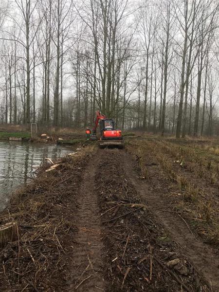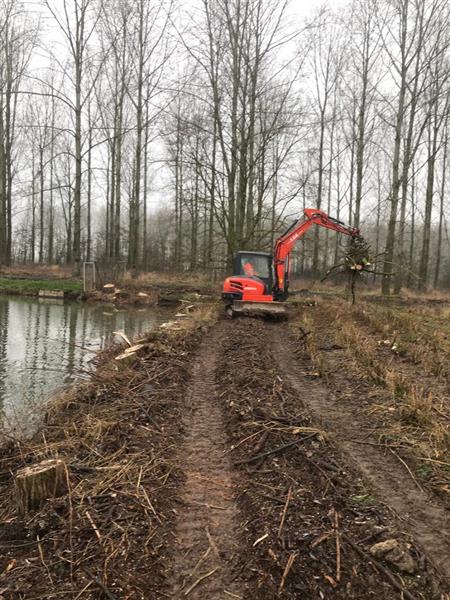We zijn gisteren begonnen met het optimaliseren en herinrichten van ons viswater. In totaal zullen er aan de noord en westzijde in totaal 11 nieuwe steigers bij geplaatst gaan worden. Hierdoor komt het totaal aantal beschikbare vissteigers uit op 31 stuks. Verder zal er een hardhouten keerwand aangebracht gaan worden t.h.v. de lange kant zodat we ook in de toekomst hier fijn en comfortabel kunnen blijven vissen. Het schiereiland zal los van de kant gegraven gaan worden om een betere doorstroming in het water te creëeren. Ook zal de visput aan de zuid en oostzijde worden uitgediept waardoor er een gelijkmatigere diepte ontstaat. En als laatste zal de parkeerplaats compleet op de schop gaan en opnieuw ingericht gaan worden zodat hier straks met gemak 30 auto’s kunnen parkeren.
