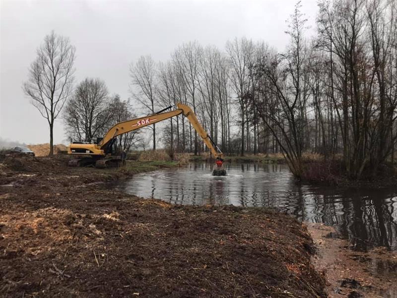 Update 1: We zijn bijna een week onderweg en de kapwerkzaamheden naderen hun einde. De bomen aan de noord, oost en zuidzijde zijn incl. de bomen op de parkeerplaats gekapt. De bomen en takken zijn vandaag op locatie verwerk tot houtsnippers. En zullen begin volgende week worden afgevoerd. Enkel de bomen rondom het grote eiland dienen nog gekapt te gaan worden voordat we over kunnen gaan tot de bagger werkzaamheden. Deze laatste bomen zullen a.s maandag worden gerooid waarna de baggerwerkzaamheden zullen starten. Morgen gaan we aanvangen met het prefabriceren van 165 meter keerwanden voor de lange dam aan de westzijde van de put. Gisteren is het hout hiervoor geleverd. Dus we kunnen aan de slag. Vanaf 26 januari zullen we gaan starten met het plaatsen van deze keerwanden. Volgende week zullen we weer een update sturen met een verslag van de werkzaamheden. #teamwork#buildingtheschipslei2.0#togetherwecanmakeitpossible#